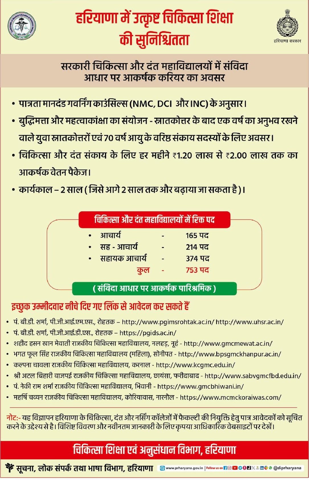 Haryana Government Medical and Dental College Vacancy 2026 Important Links
