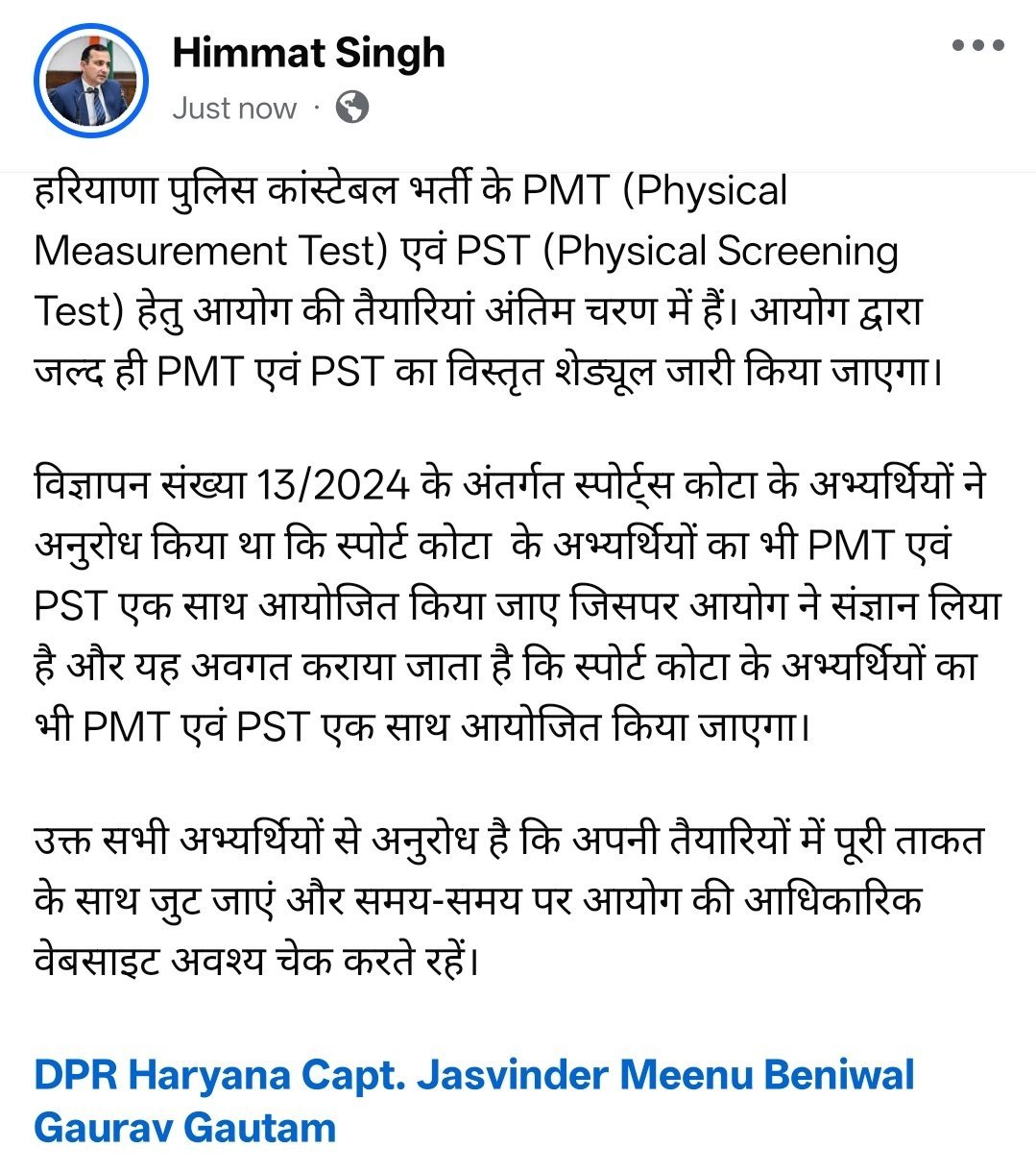 As per the new rules and notification updates, the Haryana government has approved changes to the Punjab Police Rules 1934 (applicable in Haryana) for constable and SI recruitment.